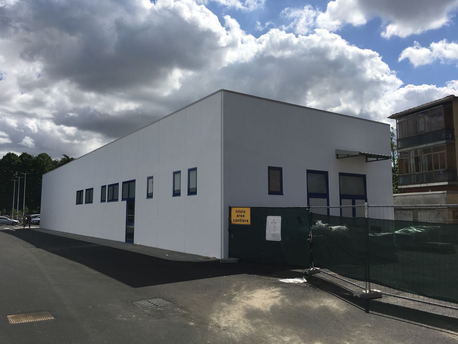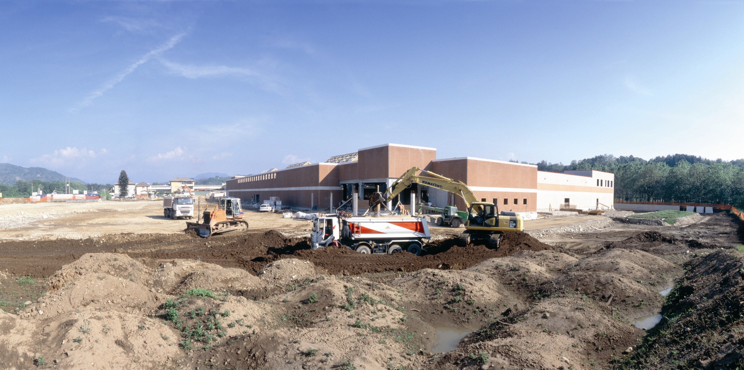 Realizzazione opere movimento terra per bonifica terreno e riporto in quota, nuove fognature interne ed esterne, linee tecnologiche e sistemazioni esterne.