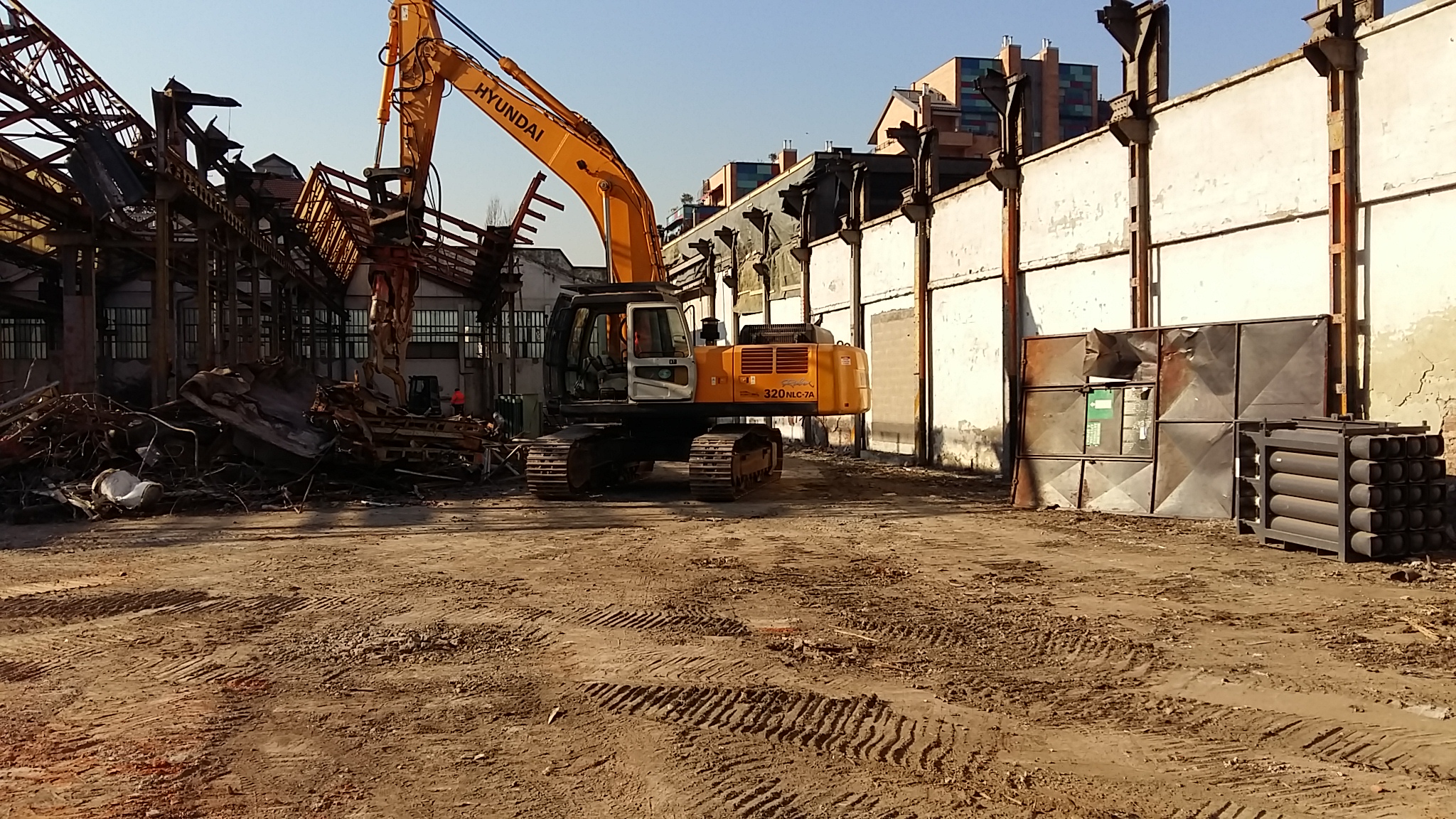 Demolizione controllata vecchio stabile, scavo e consolidamento statico mediante palificata e paratie per realizzazione di n°2 piani di parcheggi interrati e relativi servizi con struttura portante di tipo tradizionale e solaio di copertura in lastre tipo predalles.